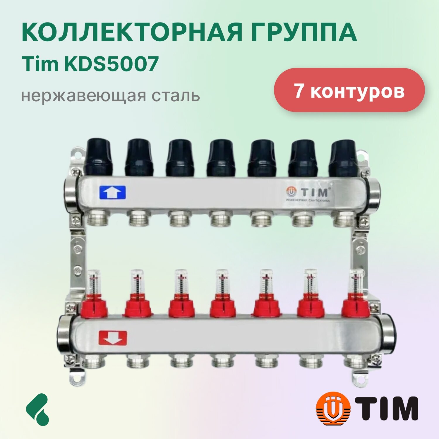 СохранитьКоллектор с расходомерами из нержавеющей стали для теплого пола 1", 7 выходов 3/4 TIM KDS5007 интересное: