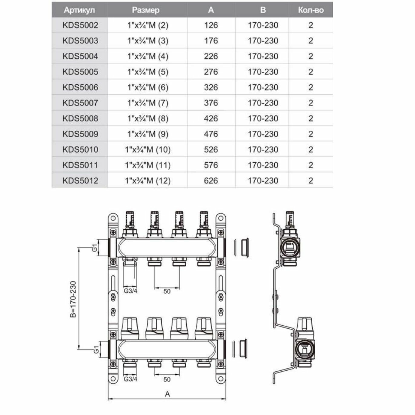 | Подробная комплектация | напорный коллектор с запорными вентилями - 1 шт., обратный коллектор с термостатическими вентилями - 1 шт., дренажные клапаны - 2 шт., цельнометаллический кронштейн - 2 шт., заглушки - 2 шт. |