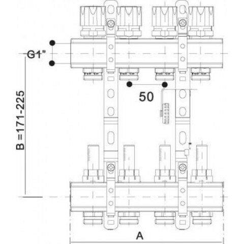 | Подробная комплектация | напорный коллектор с запорными вентилями - 1 шт., обратный коллектор с термостатическими вентилями - 1 шт., дренажные клапаны - 2 шт., цельнометаллический кронштейн - 2 шт., заглушки - 2 шт. |