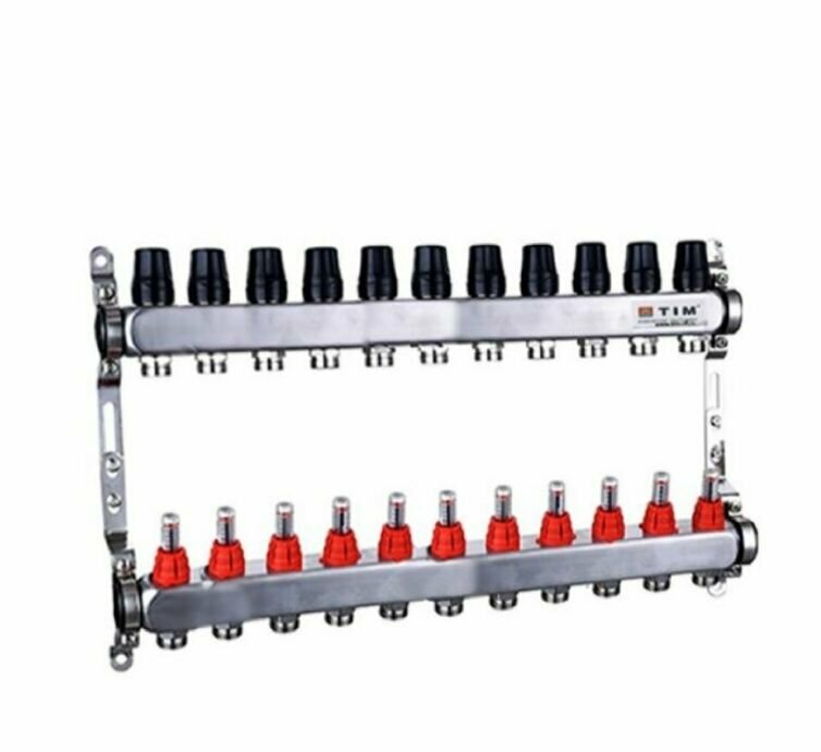 Коллектор с расходомерами из нержавеющей стали для теплого пола 1", 12 выходов 3/4 TIM KDS5012