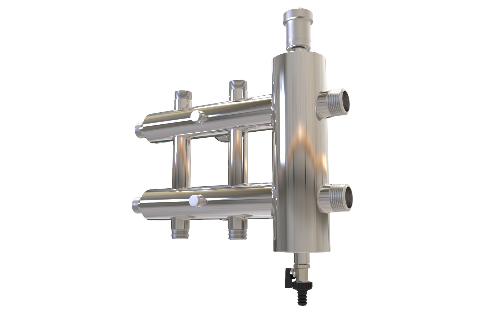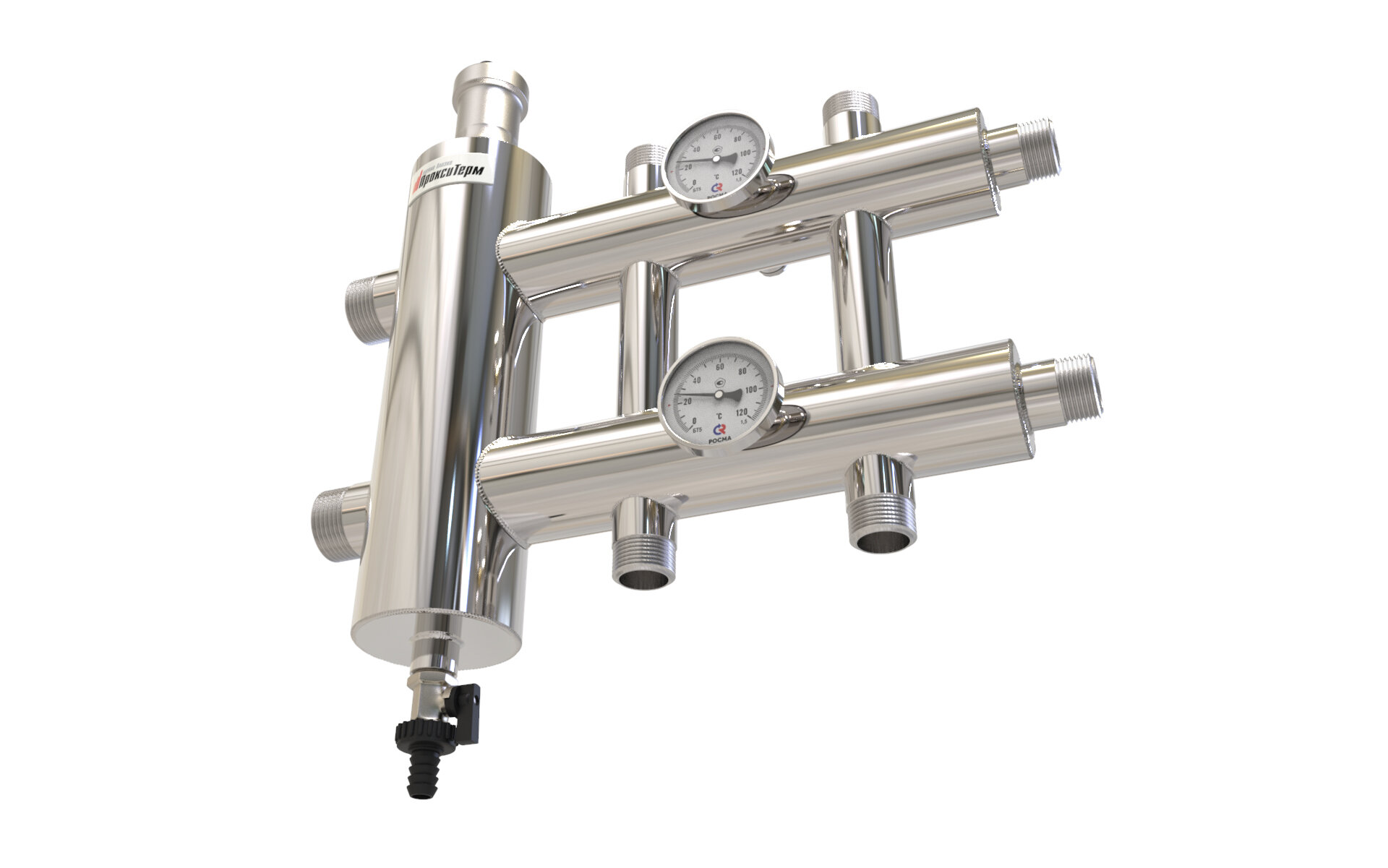 Купить Распределительный коллектор с гидрострелкой из нержавеющей стали 60 кВт, 3 контура, GSK 25-3