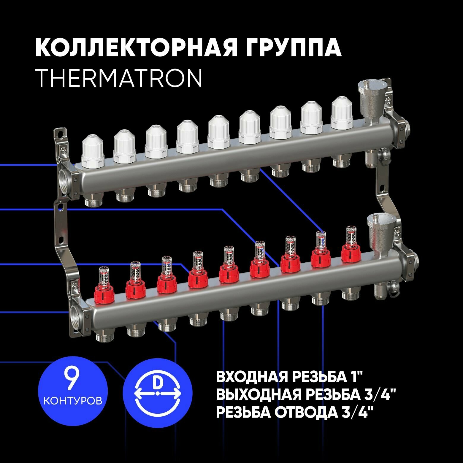 Купить Коллекторная группа 1"х9 вых. Евроконус 3/4" с расходомерами, автомат. воздухоотвод ThermaTron (нерж. сталь)