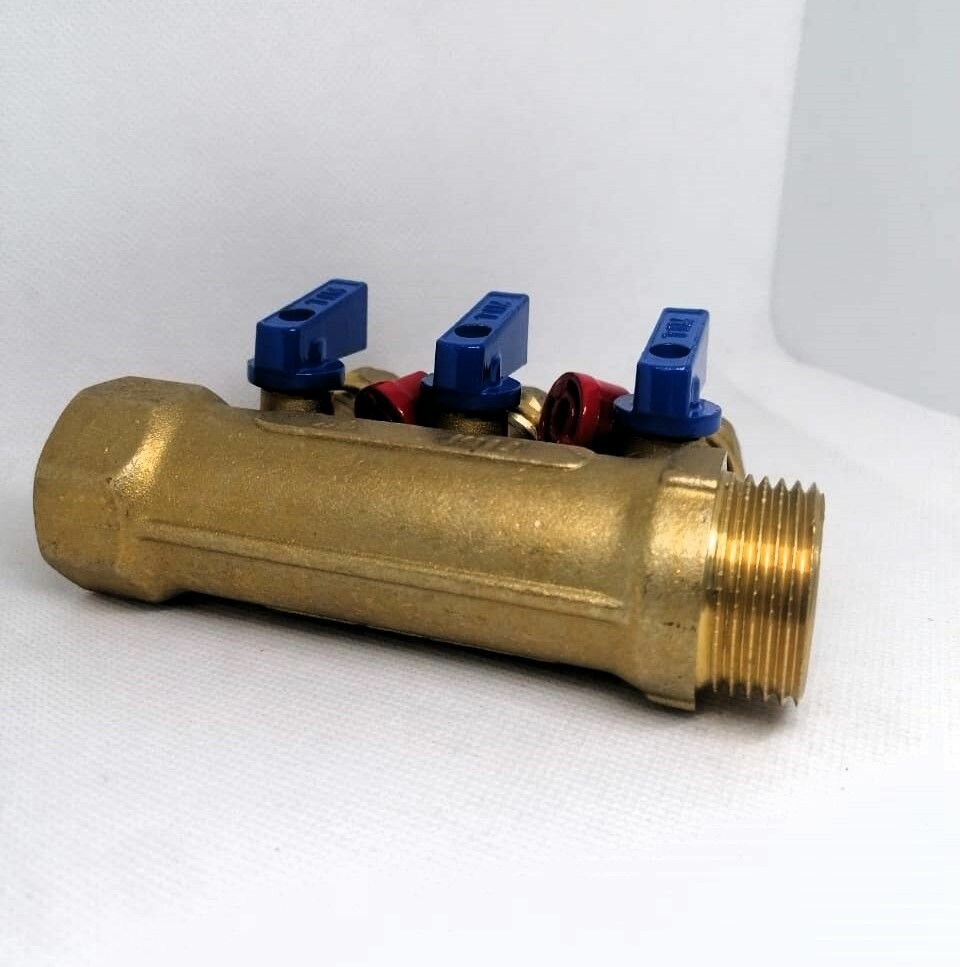 | Подробная комплектация | Коллектор с шаровыми кранами, упаковка.В комплекте имеются красные и синие ручки. |