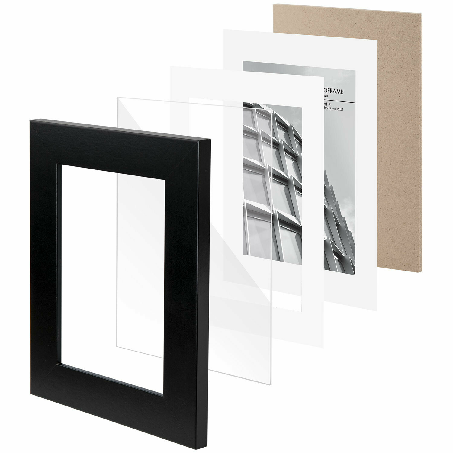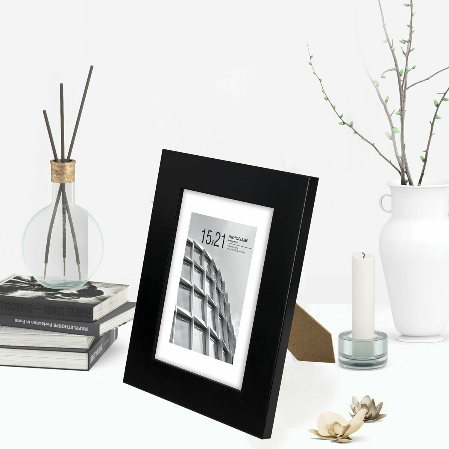 Купить Рамка (фоторамка) для фото, фотографий, картин, грамот на стену А5 15х21 см с паспарту 10х15 см небьющаяся, багет 40 мм, Мдф, Brauberg, черная, 391268