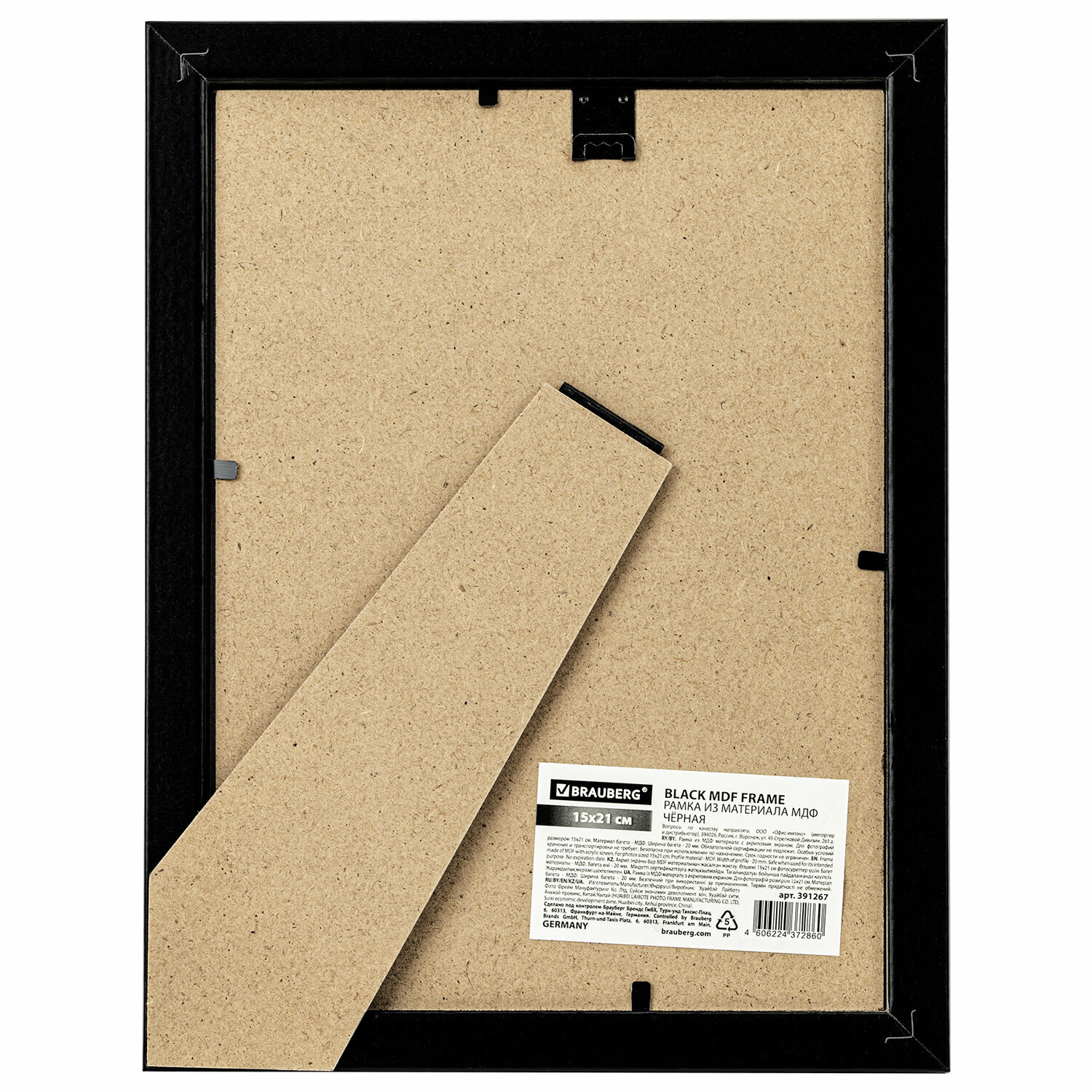 Рамка (фоторамка) для фото, фотографий, картин, грамот на стену А5 15х21 см с паспарту 10х15 см небьющаяся, багет 40 мм, Мдф, Brauberg, черная, 391268