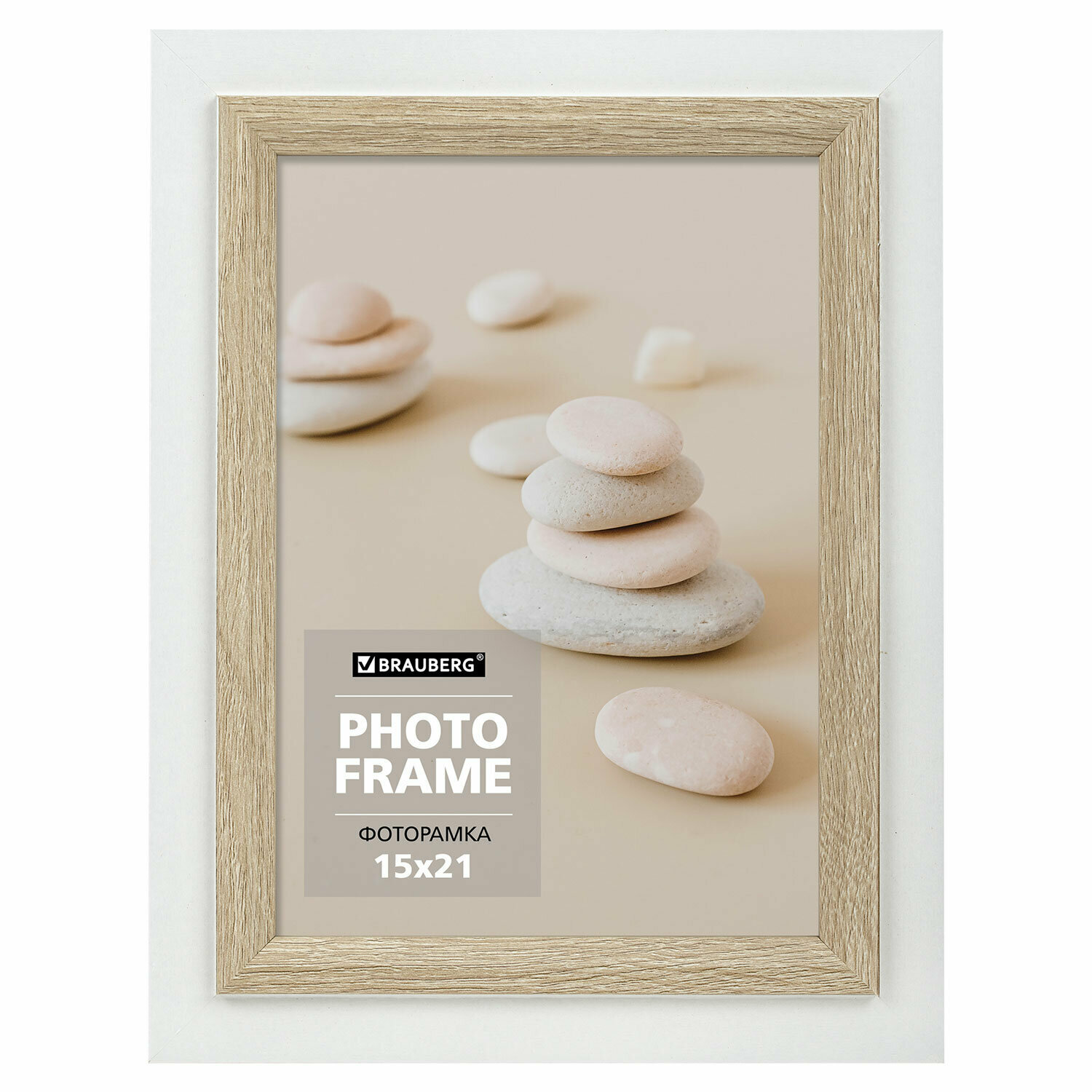 Рамка (фоторамка) для фото, фотографий, картин, грамот на стену А5 15х21 см небьющаяся, багет 40 мм, Мдф, Brauberg, белая/коричневая, 391269