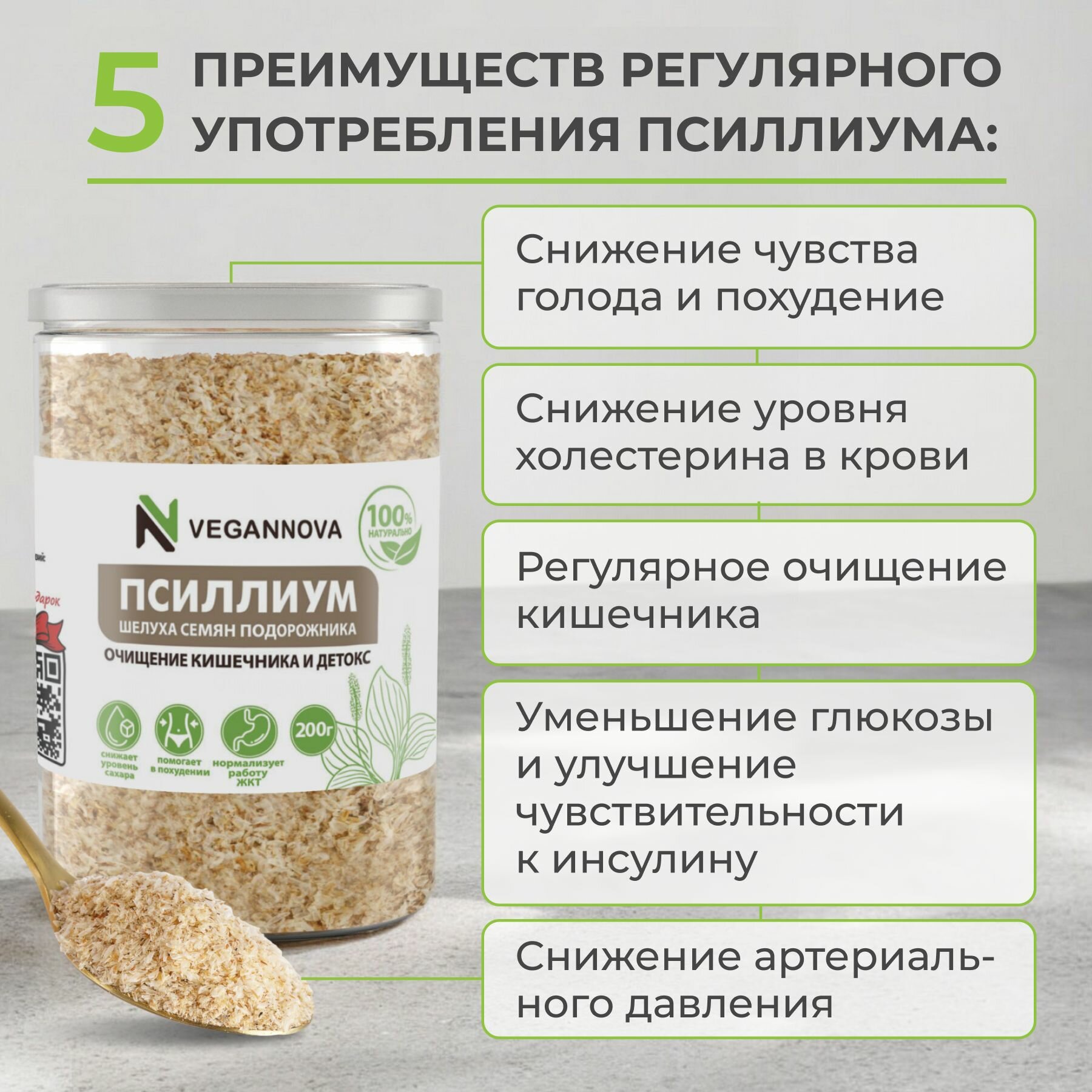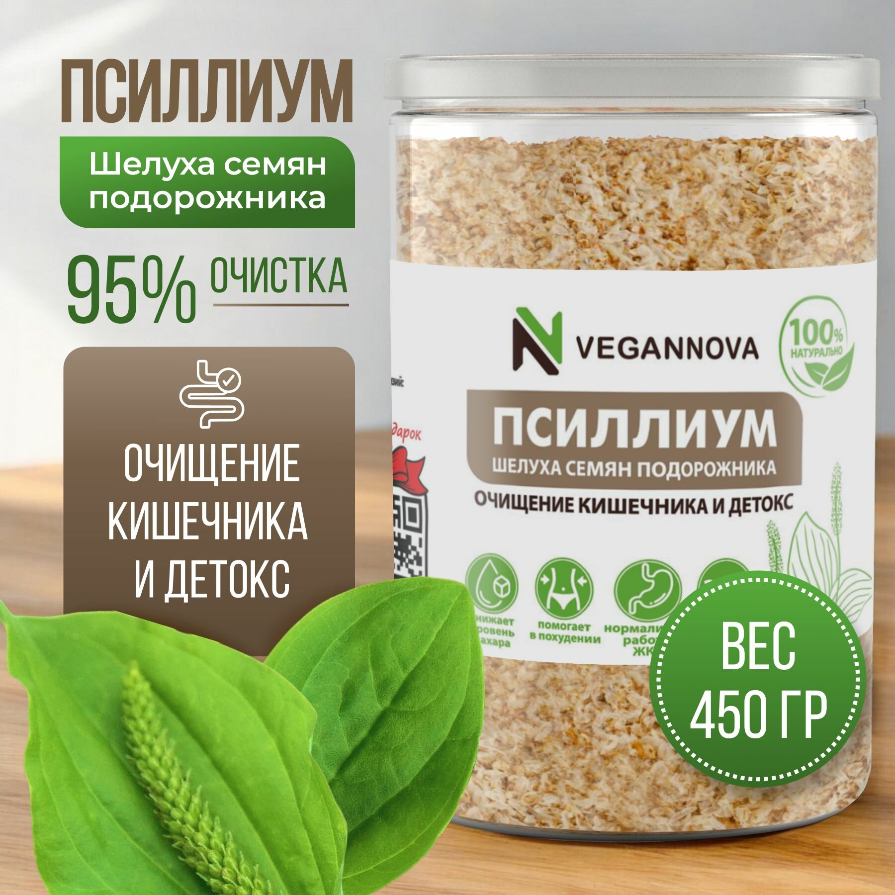Купить VeganNova Псиллиум (шелуха семени подорожника) очищающий, для похудения, 85% клетчатки, банка 450 г