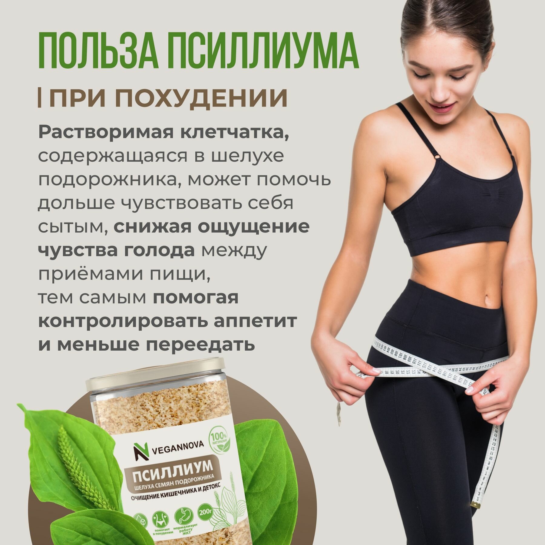 VeganNova Псиллиум шелуха семян подорожника. очищающий, для похудения, 85% клетчатки, банка 200 г. Порошок