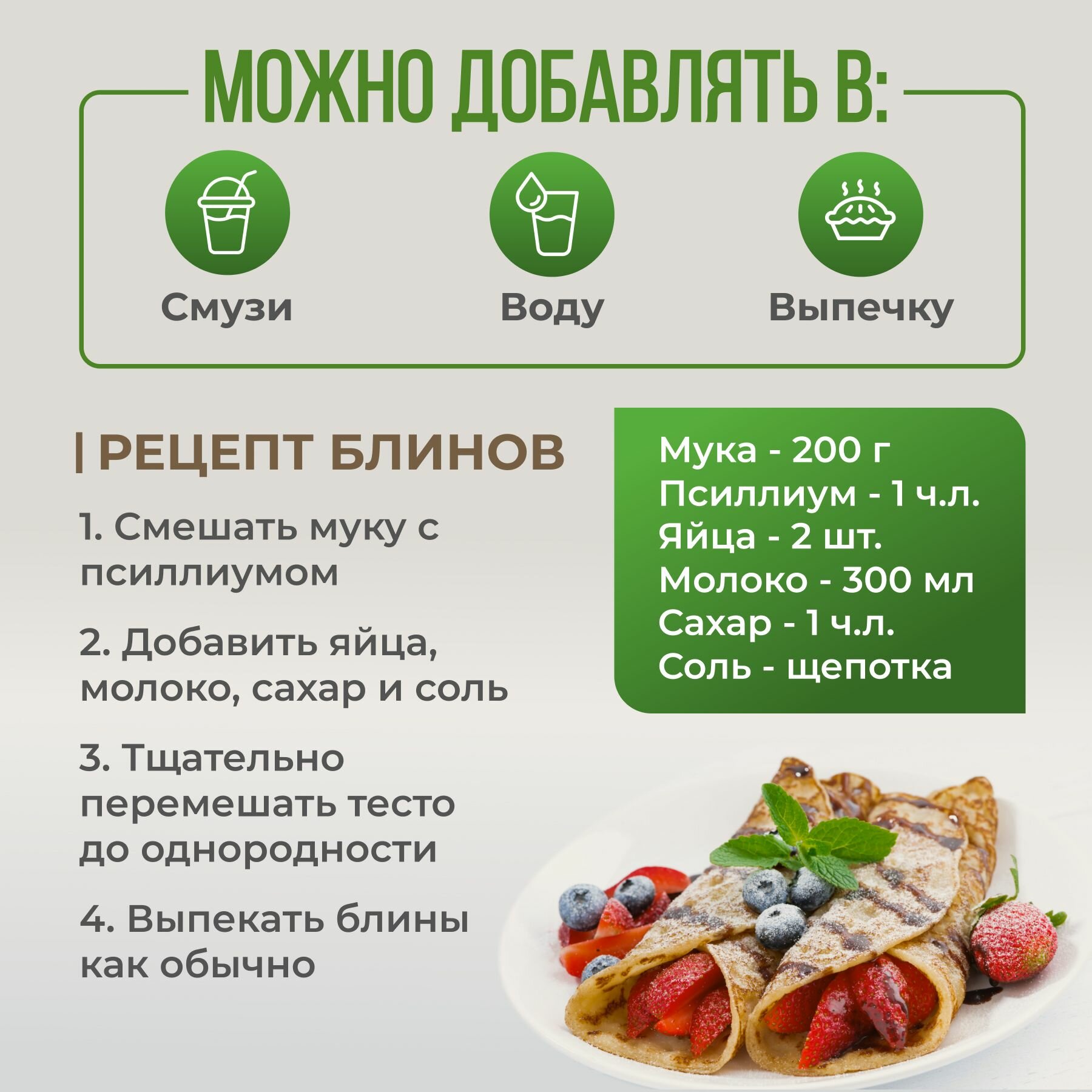 | Дополнительная информация | Очистка 95%, Светлый псиллиум. Быстро разбухает |