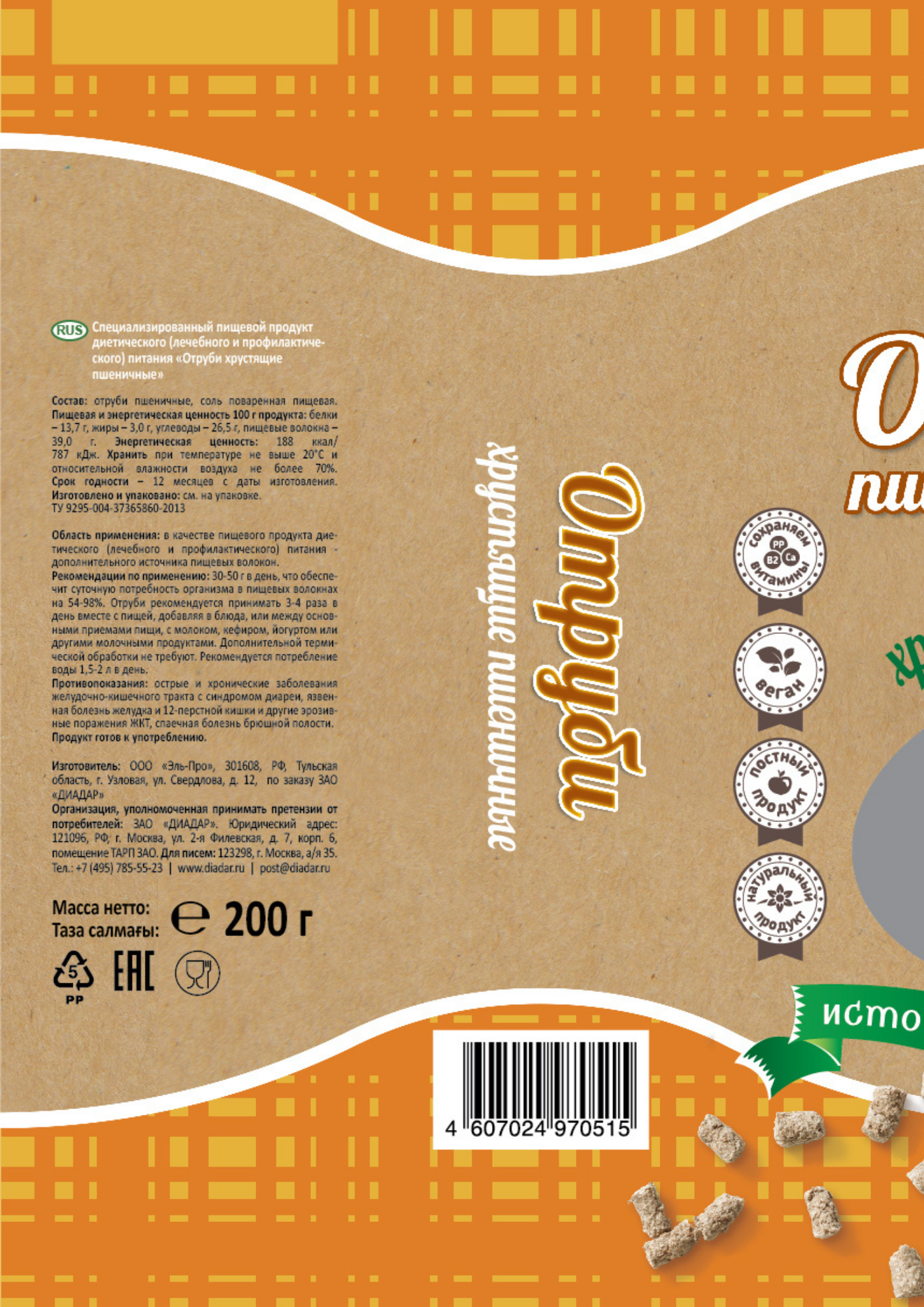 Отруби "диадар" Пшеничные 4 шт по 200 гр без сахара / веган/ пост / без лактозы интересное: