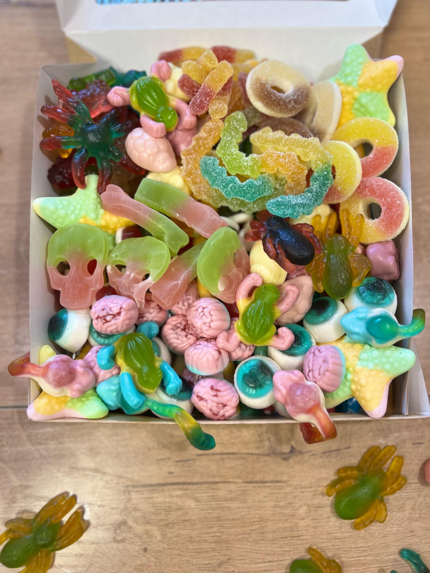 | Состав | глюкозно-фруктозный сироп,сахар,желатин,концентрированный яблочный сок,регулятор кислотности,лимонная кислота, агент желирующий: пектины; Ароматизаторы,глазирователь: воск карнаубский;концентрированный сок черной моркови, красители;каротины,куркумин,синий блестящий FCF |