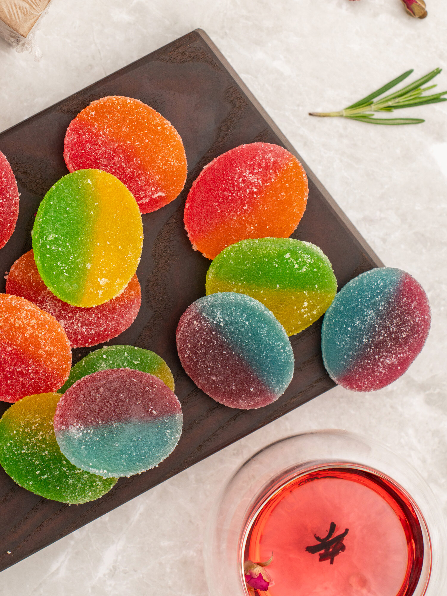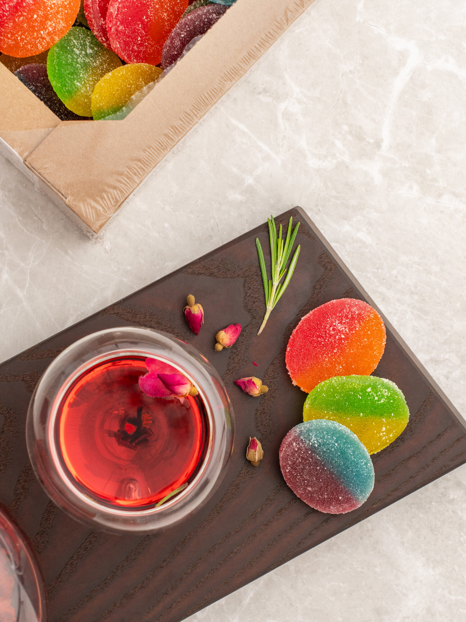 | Состав | сахар, патока, влагоудерживающий агент - сорбитол, желирующий агент - пектин, эмульгирующая соль - лактат натрия, регулятор кислотности - кислота лимонная, глазирователь Е903, ароматизатор "Мандарин", краситель натуральный Е160(е) |