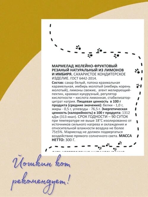 Ниже Вы можете прочитать отзывы на Мармелад Йошкин кот Желейно-Фруктовый резаный натуральный из Лимонов и Имбиря, ознакомится с подробными характеристиками, посмотреть интересные обзоры и фотографии на Мармелад Йошкин кот Желейно-Фруктовый резаный натуральный из Лимонов и Имбиря.