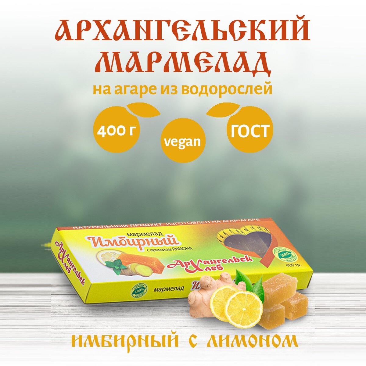 Купить Архангельский мармелад Имбирный с ароматом лимона натуральный на агар-агаре без обсыпки из сахара 400 г.