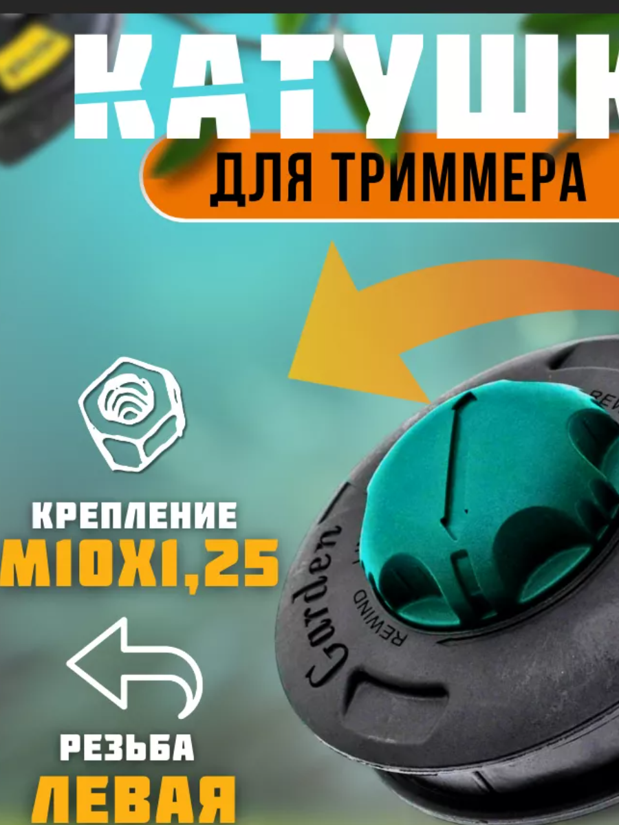 Катушка для триммера GARDEN Зелёная полуавтомат, М10х1.25 левая резьба (железный пятак) интересное: