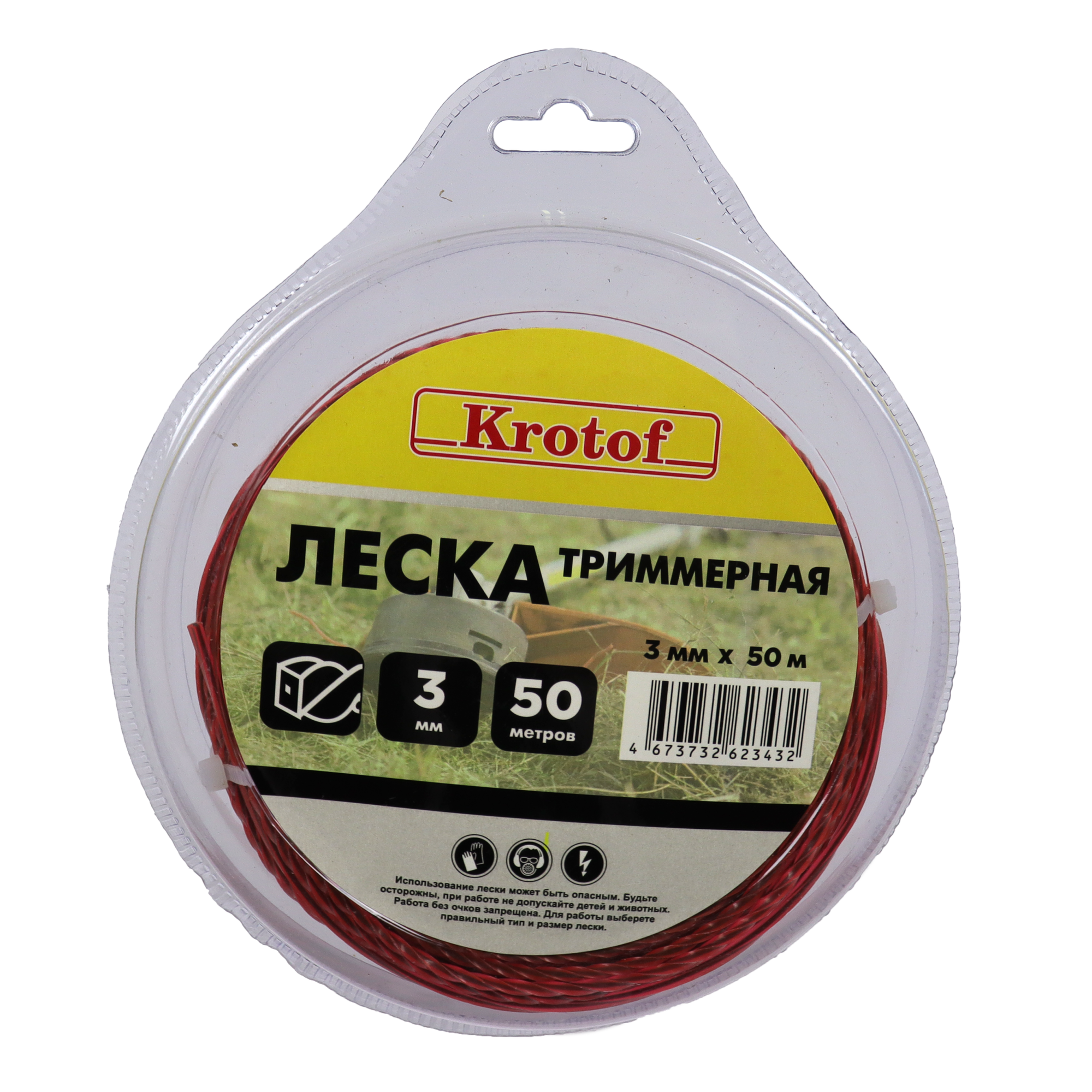 Леска для триммера 3,0 мм х 50м (витой квадрат с сердечником, блистер, красный) Krotof / кротоф интересное:
