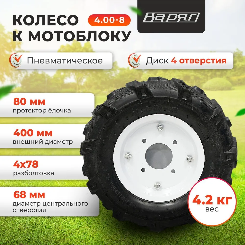 Колесо для мотоблока пневматическое 4.00-8 варяг (4 отверстия) интересное: