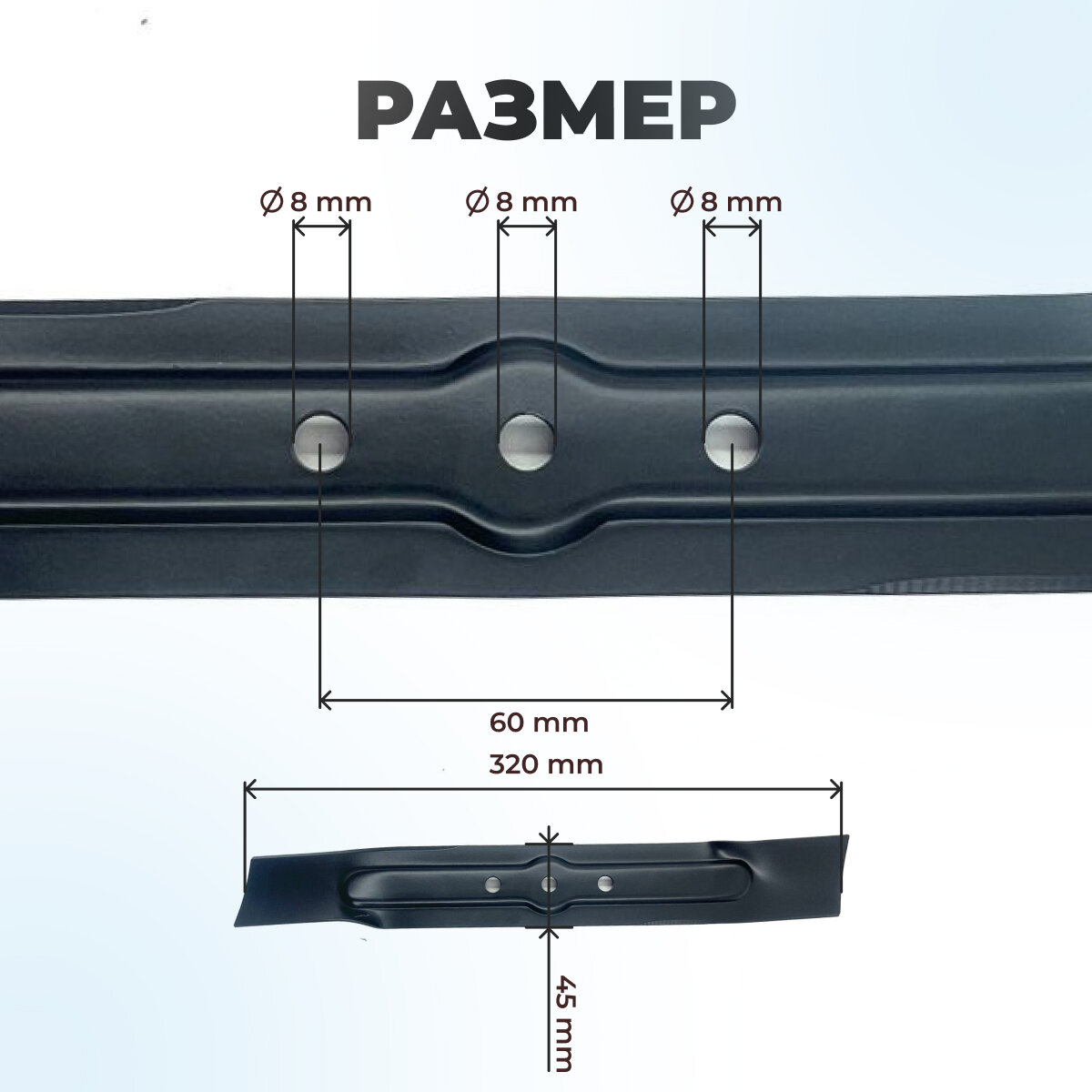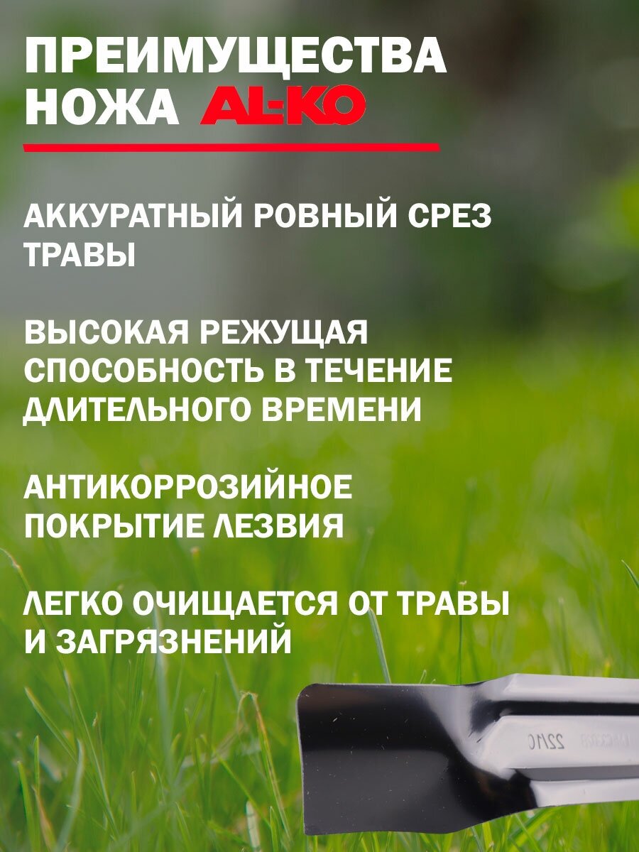 | Комплектация | Технические характеристики ножа для газонокосилки AL-KO 474260 Длина ножа 32 см |