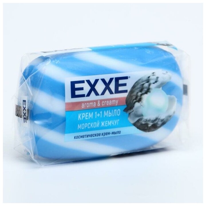 Крем+мыло Exxe, 1+1 "Морской жемчуг", синее полосатое, 80 г