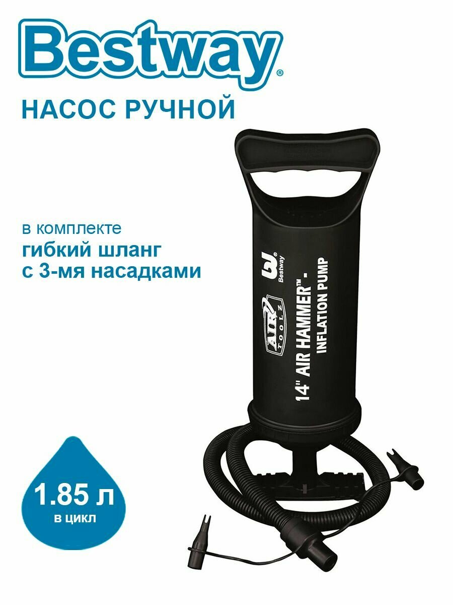 Насос ручной 36см, 1.85л/цикл, шланг с 3-мя насадками Bestway