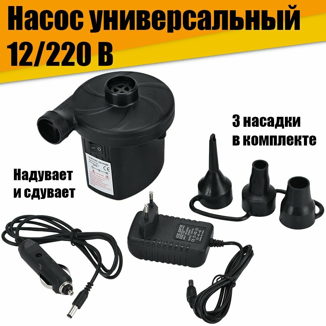 Купить Насос электрический автомобильный от прикуривателя и от сети для матрасов, надувных игрушек 12/220 В, 3 насадки в комплекте