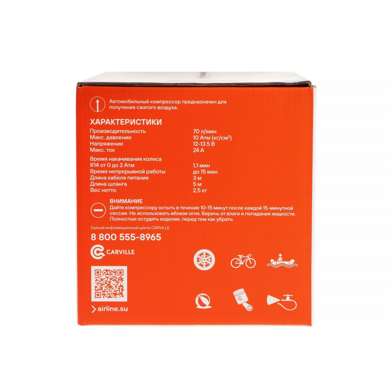Компрессор X6 двухпоршневой (70л/мин., 10 АТМ, от АКБ) (CA-070-17S) AIRLINE CA07017S | цена за 1 шт