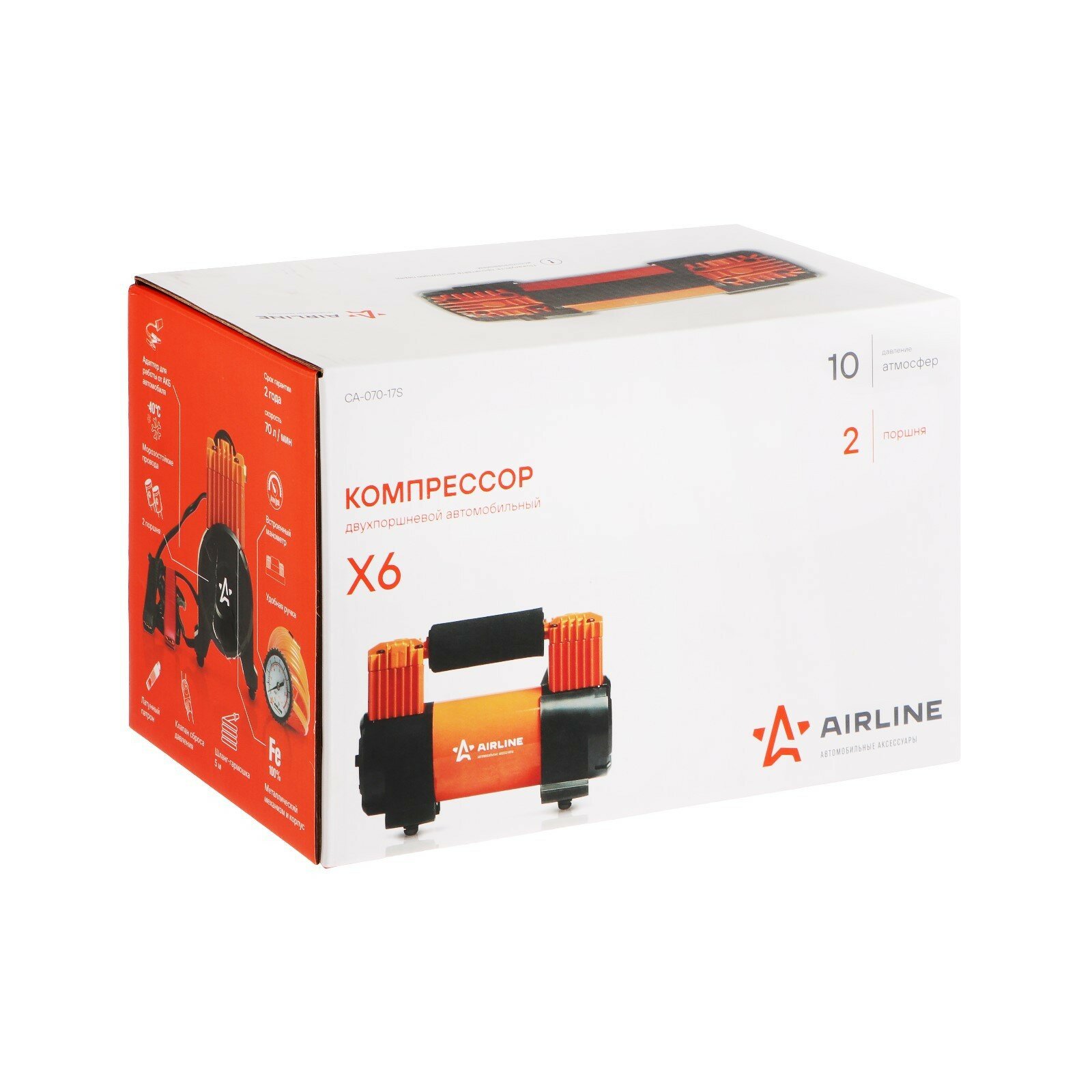 Компрессор X6 ! двухпоршневой, 70л/мин, 10атм, от АКБ, серия STANDARD\ AIRLINE CA07017S | цена за 1 шт