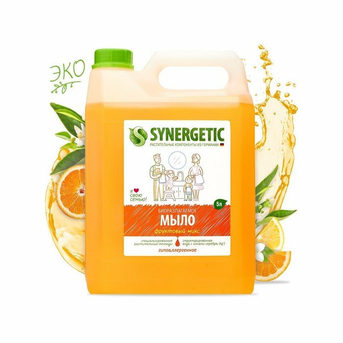 Мыло жидкое 5 л SYNERGETIC "Фруктовый микс", гипоаллергенное, биоразлагаемое, 105502 1 шт .