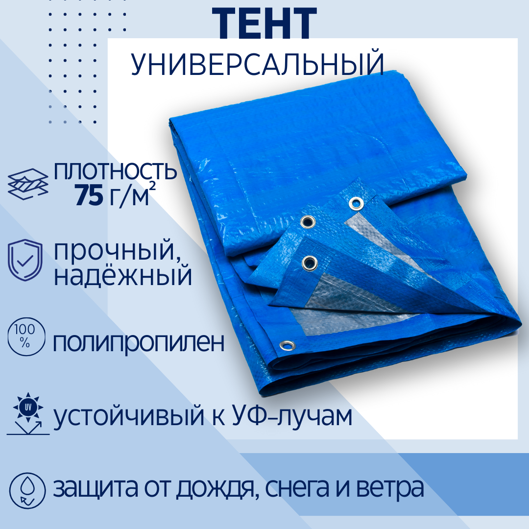 Тент туристический 3х4 м., 75 г/м2 из полипропилена с люверсами, полог укрывной универсальный (строительный, садовый), Миротент, Россия