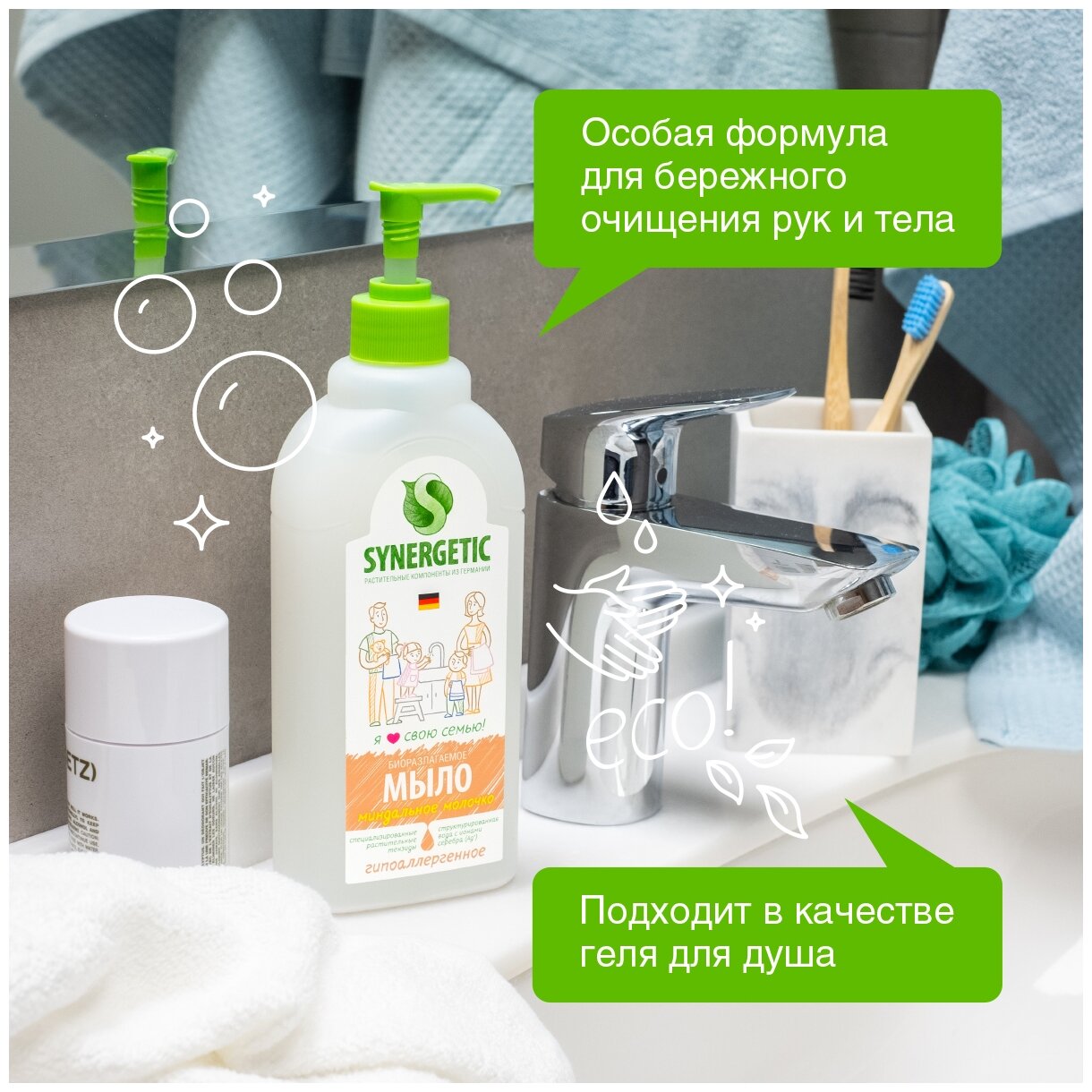 Квант продажи 2 ед. Мыло жидкое 500 мл SYNERGETIC «Миндальное молочко», гипоаллергенное, биоразлагаемое, дозатор