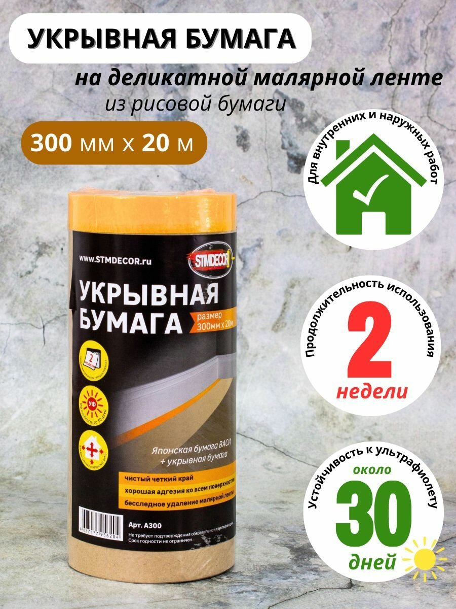 СохранитьБумага укрывная с клейкой деликатной лентой STMDecor A300 (30см*20м) интересное: