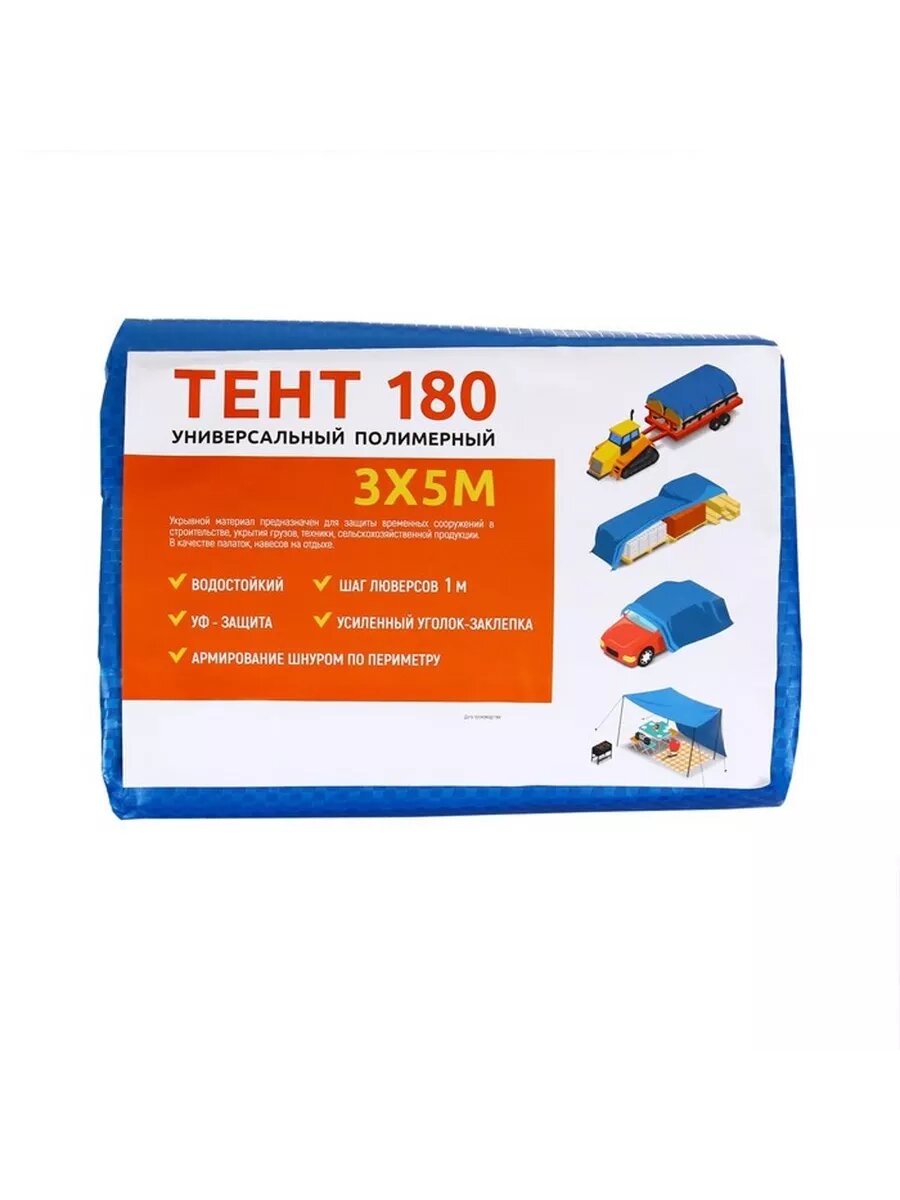 Тент защитный, 5 × 3 м, плотность 180 г/м², УФ, люверсы шаг 1 м, синий интересное: