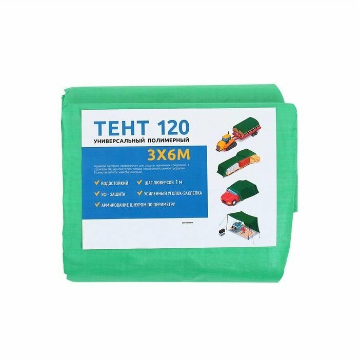 Тент защитный, 6 × 3 м, плотность 120 г/м², УФ, люверсы шаг 1 м, зелёный/серебристый интересное: