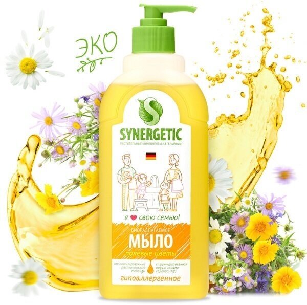 Synergetic Жидкое мыло Synergetic "Полевые цветы", гипоаллергенное, 500 мл