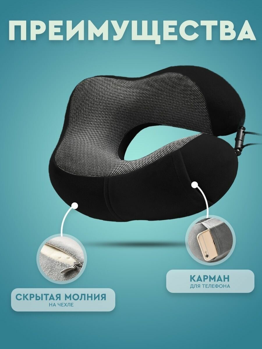 Подушка для путешествий с эффектом памяти на шею черная интересное: