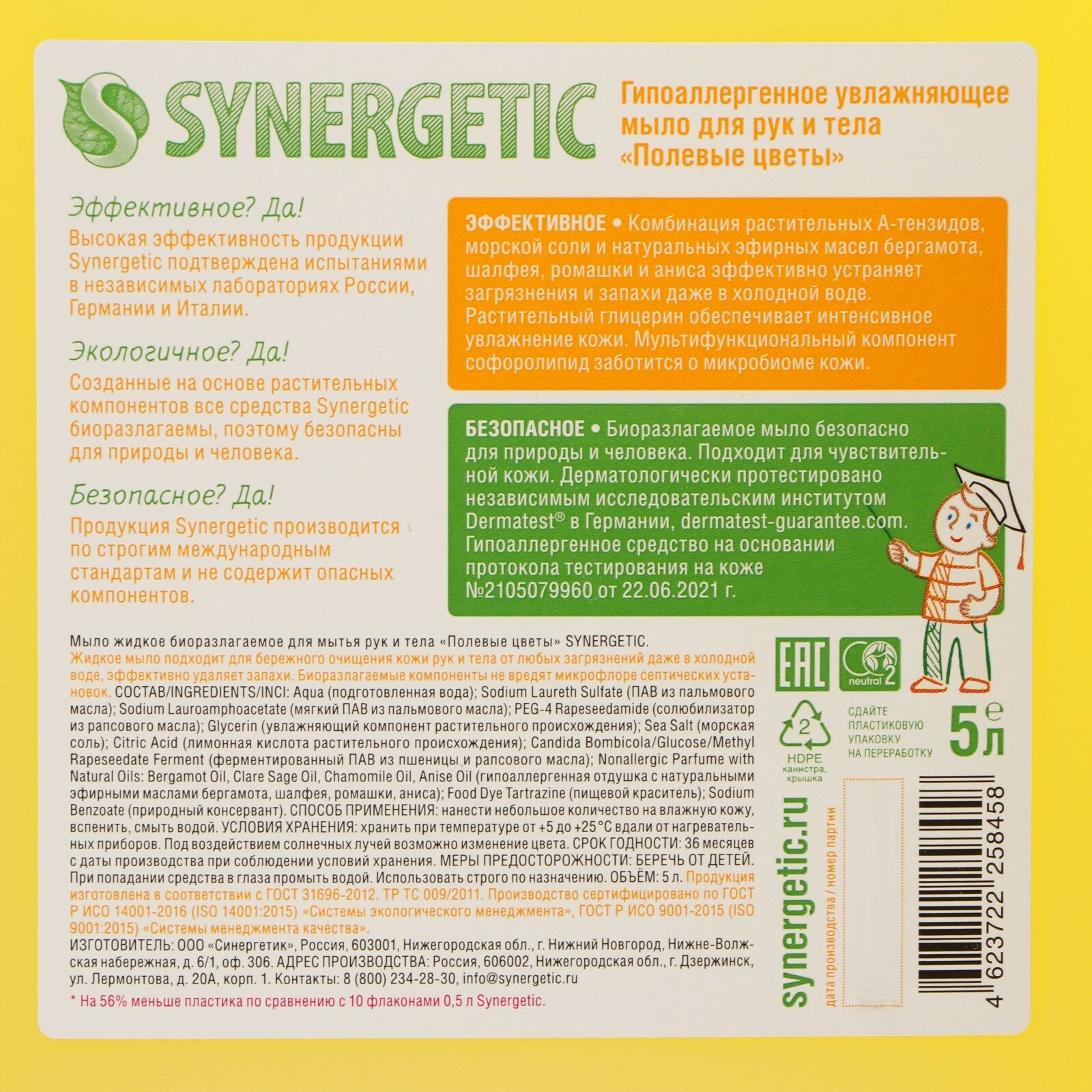 Жидкое мыло SYNERGETIC "Полевые цветы" с эффектом увлажнения, гипоаллергенное, 5л (литров)