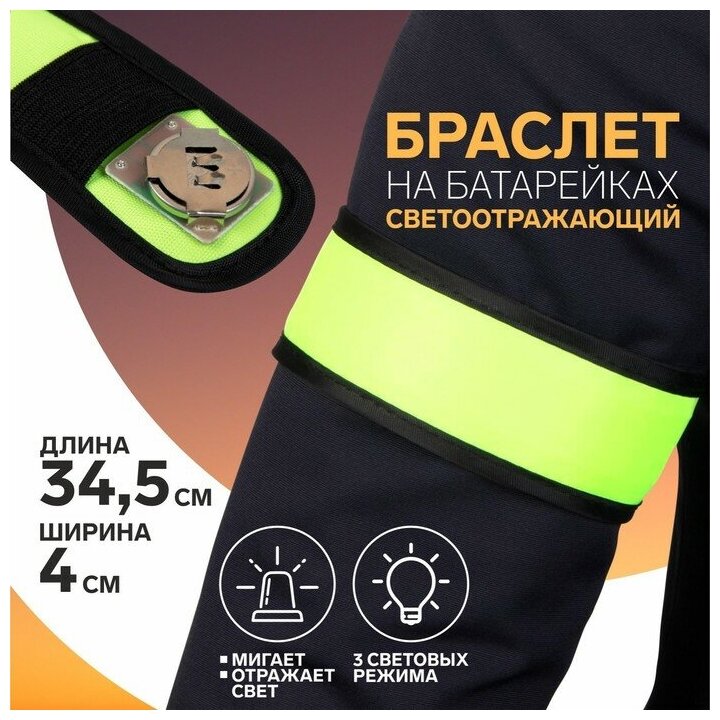 Светоотражающий браслет на батарейках, самофиксирующийся, 3 режима, 34,5 x 4 см, цвет желтый