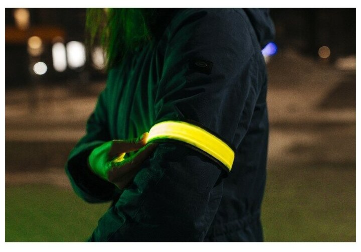 Светоотражающий браслет Арт Узор на батарейках, 3 режима, 34,5х4 см, цвет желтый интересное: