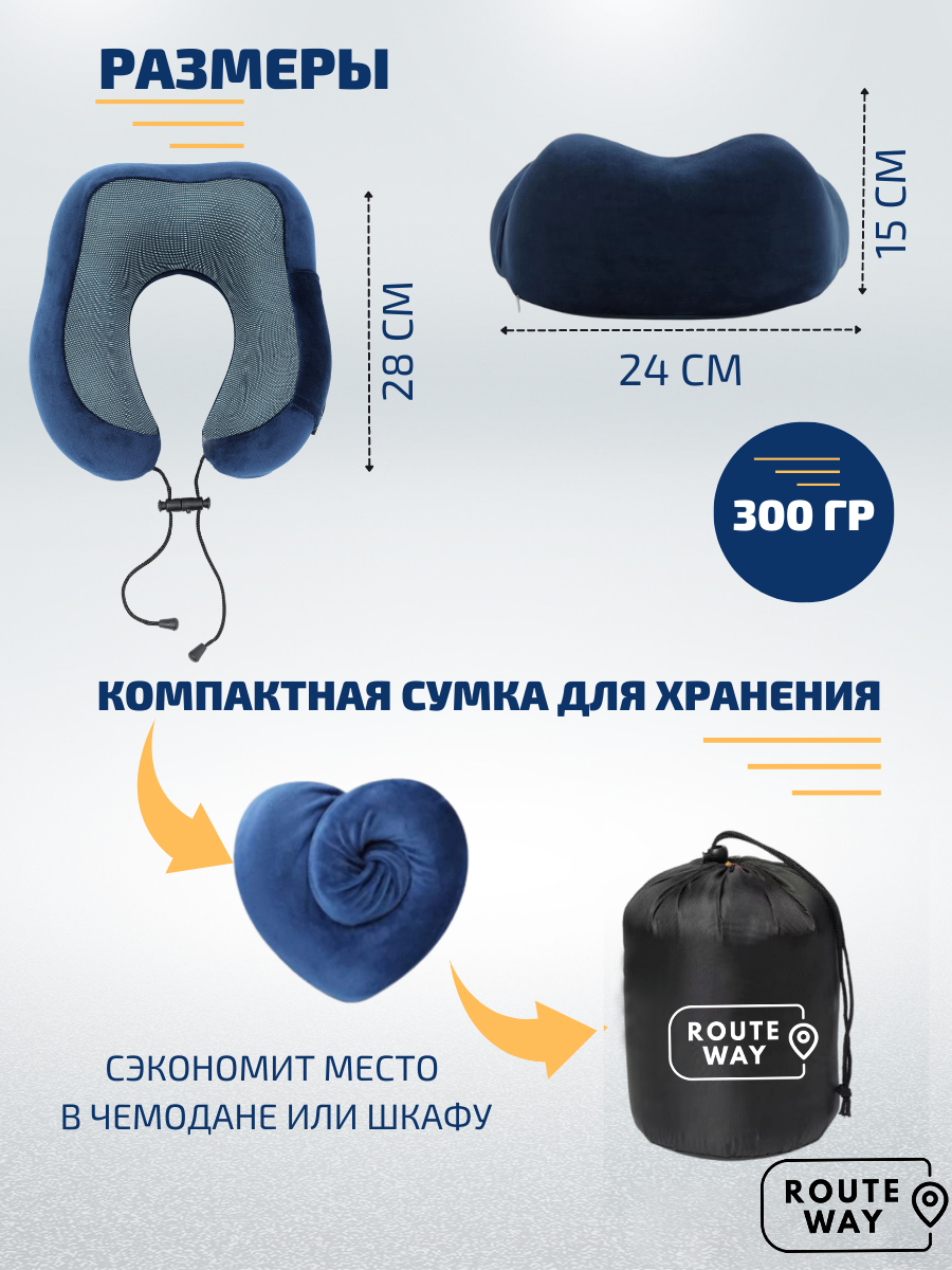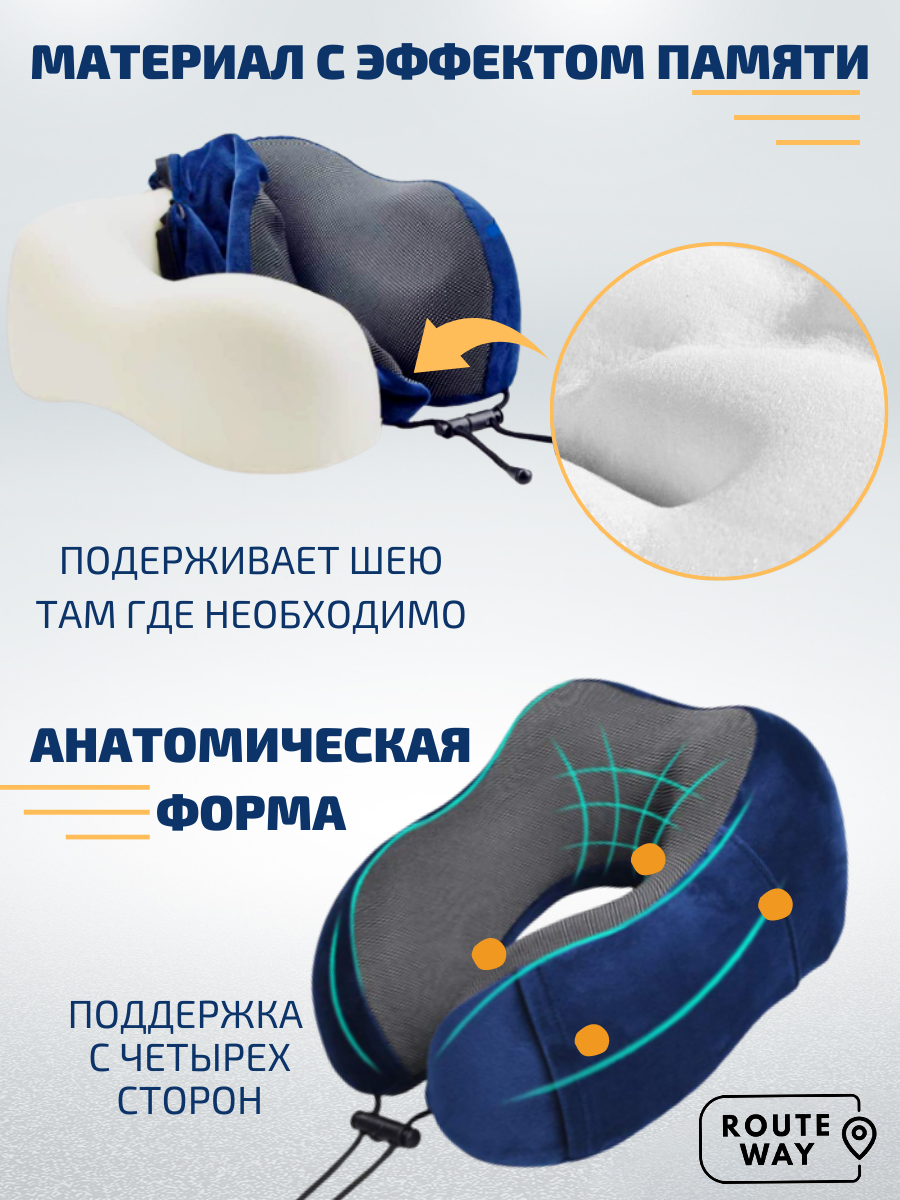 Подушка для шеи с эффектом памяти Velur синяя с карманом интересное: