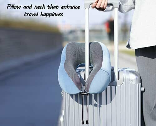 Подушка для шеи с эффектом памяти Velur синяя с карманом