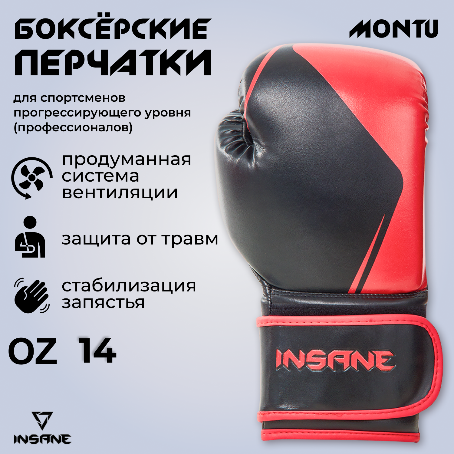 Перчатки боксерские INSANE MONTU IN23-BG500, ПУ, красный, 14 oz
