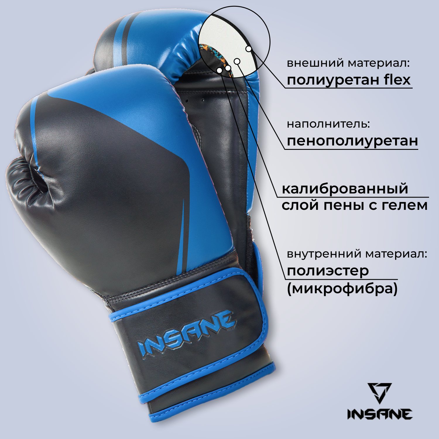 Перчатки боксерские Insane Mars, пу, синий, 12 Oz