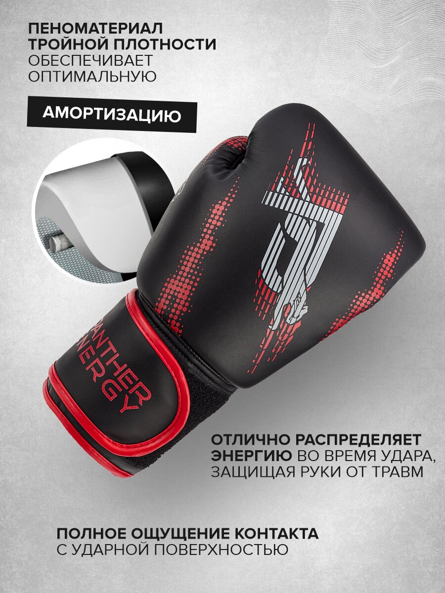 Боксерские перчатки Panther Energy Lighting Red, искусственная кожа, черно-красные, 8 унций