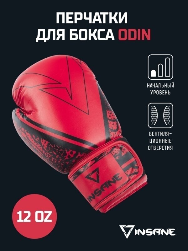 Перчатки боксерские ODIN, ПУ, красный, 12 oz, Insane
