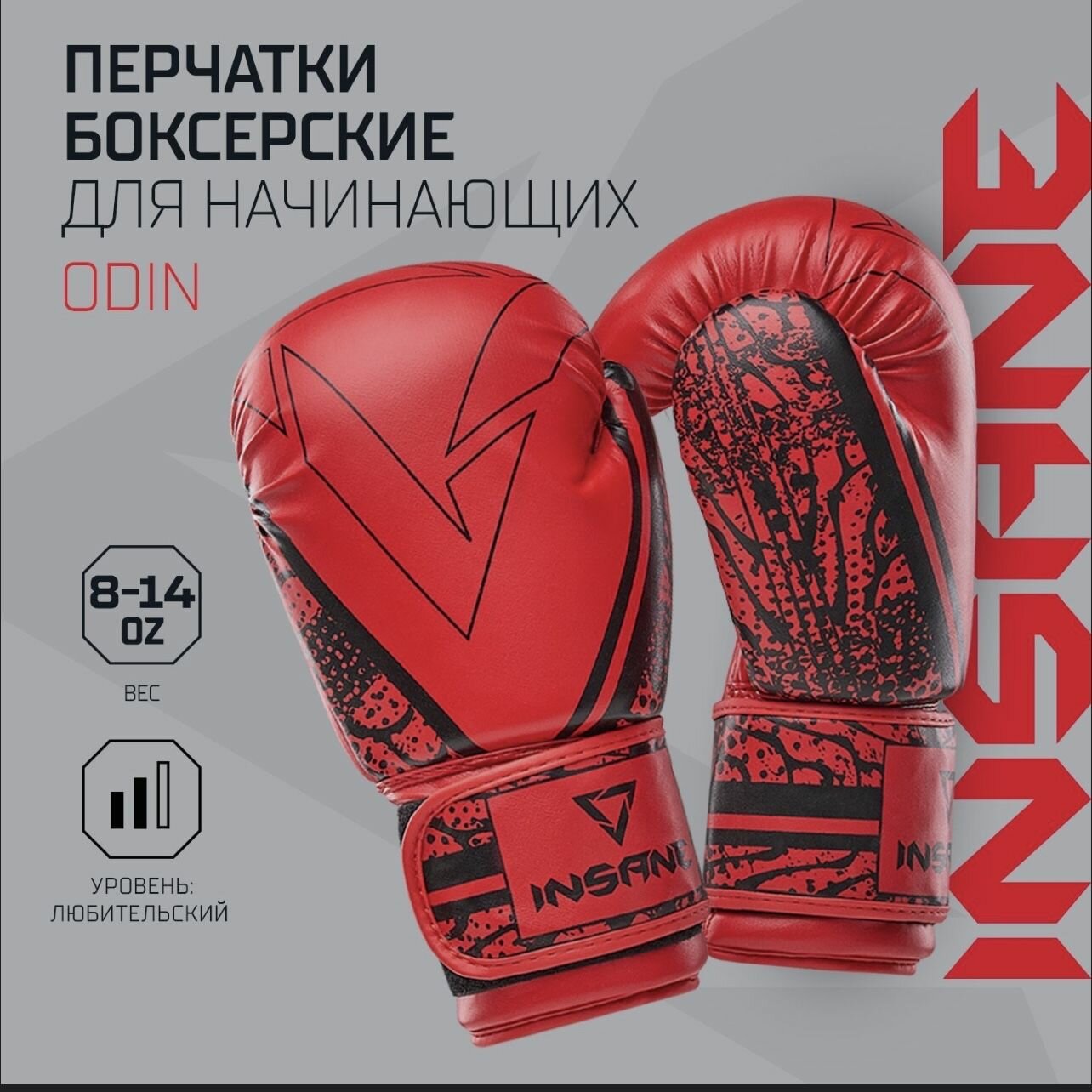 Перчатки боксерские INSANE ODIN IN22-BG200, ПУ, красный, 8 oz