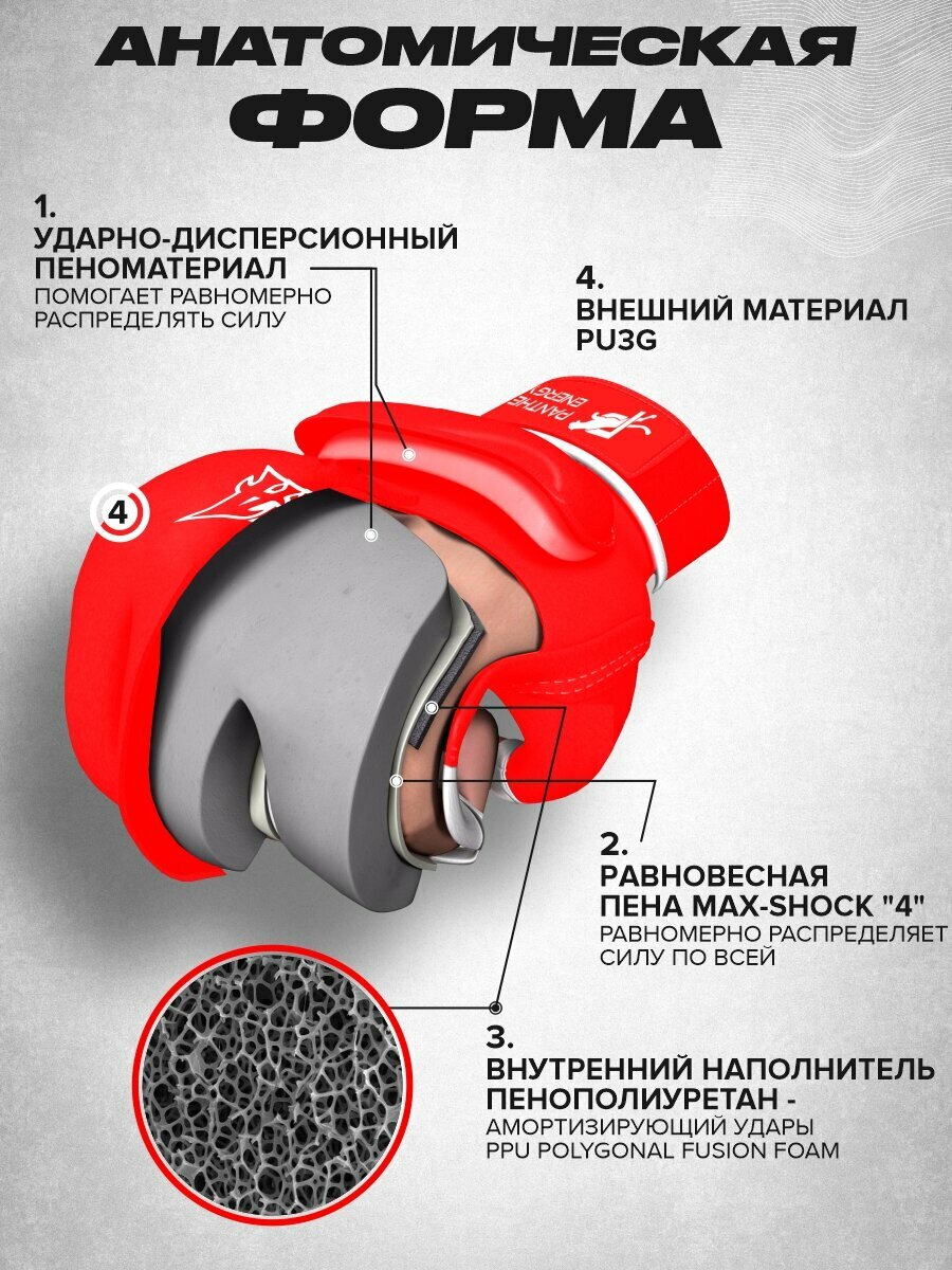 Перчатки ММА Panther Energy с анатомическим уплотнителем, размер XS