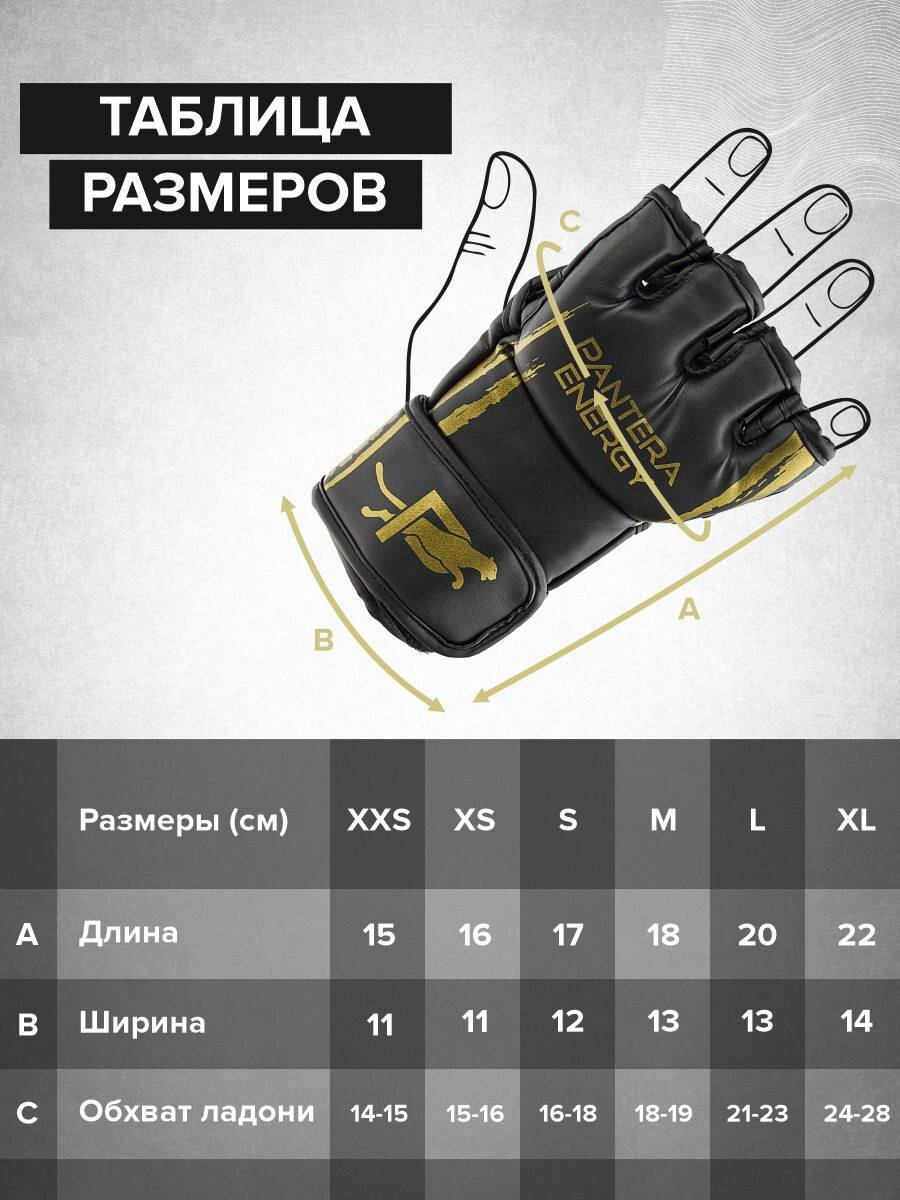 Перчатки ММА Panther Energy с анатомическим уплотнителем, размер XS