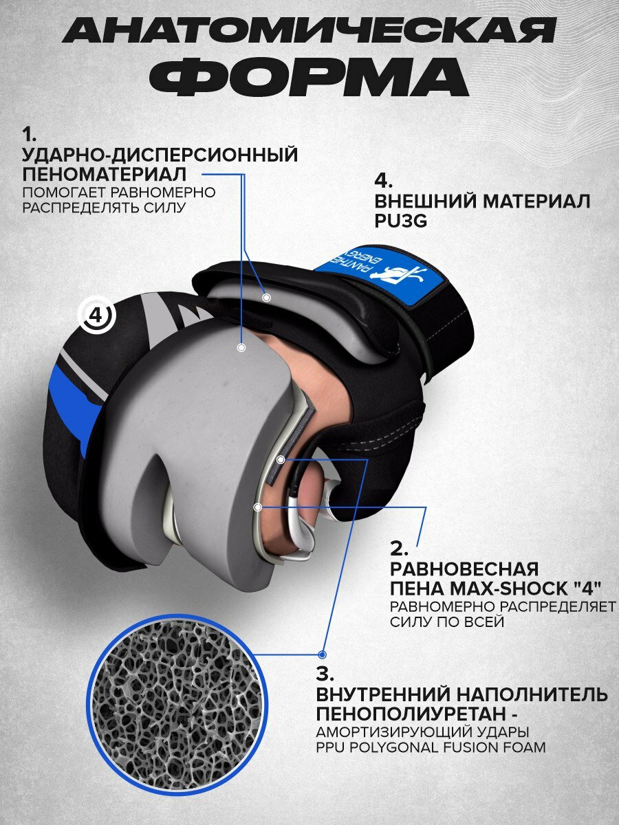 Перчатки ММА Panther Energy, размер M, цвет синий, с анатомическим уплотнителем