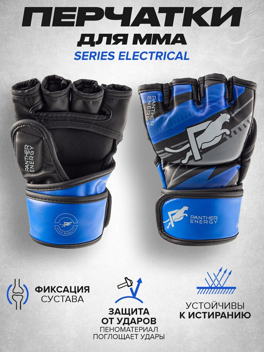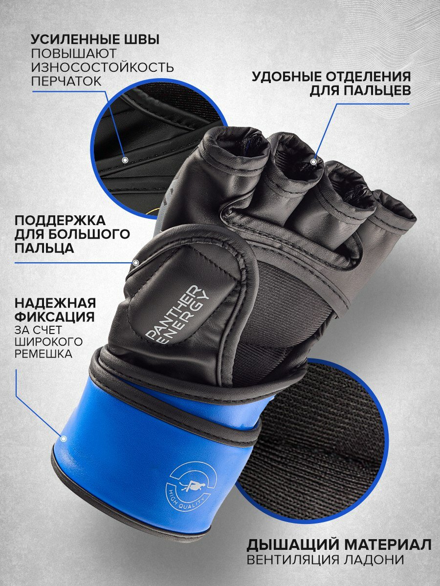 Перчатки ММА Panther Energy, размер S, черно-синие, защита большого пальца, анатомическая