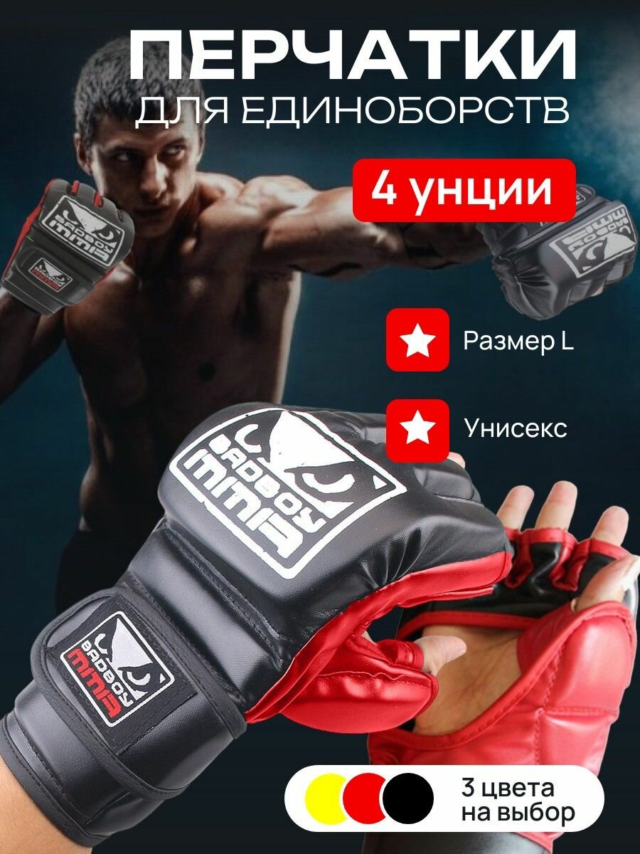 Перчатки ММА тренировочные Bad Boy без пальцев для единоборств черно-красные, ММА / 4 oz / M